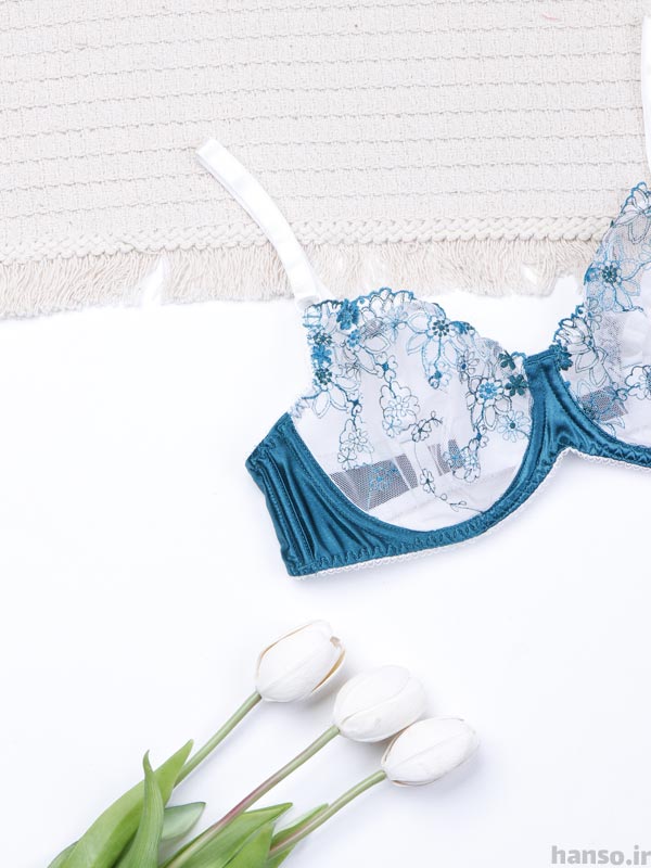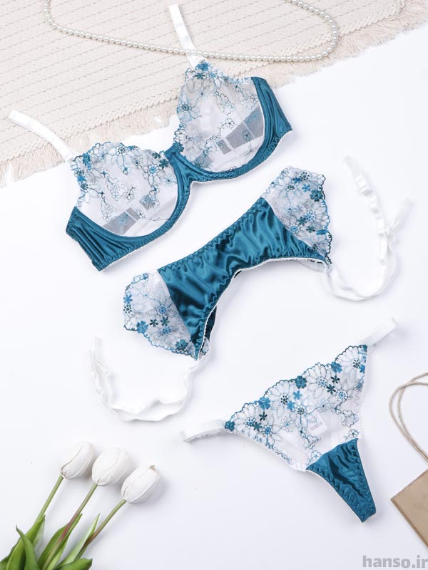 ست بند جوراب و شورت و سوتین فنردار توری Bereta برتا کد 4010G از جنس توری (کشسانی کم) است که روی آن گلدوزی کار شده است. سوتین این ست فنردار و پوشانندگی بالای سینه را ندارد . مدل شورت بکلس از جنس توری و نخ است . لایه داخلی فاق شورت نخی است. این ست علاوه بر زیبایی، راحت هم هست و ظرافتش حتی از عکس هم به چشم میاد و تنخورش عالیه.