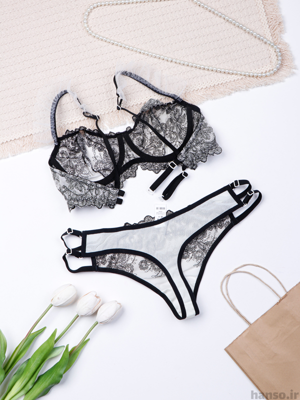 ست شورت و سوتین فنردار توری ژینا Jina مشکی کد 1008