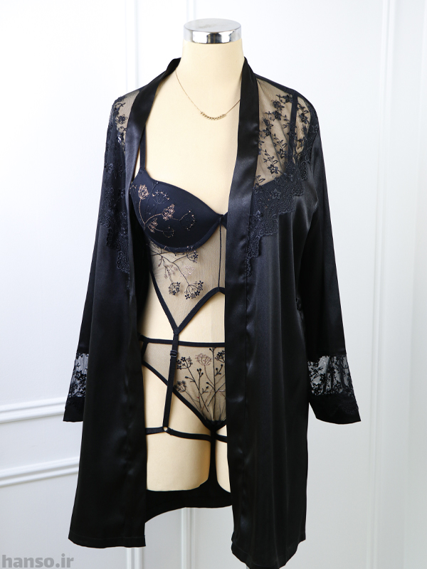 لباس خواب زنانه ساتن و گیپور اما EMA کد 2808