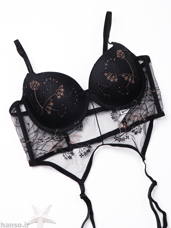 ست بند جوراب و شورت و سوتین بلند دانتل فنردار Bereta برتا گلدوزی کد 6600C