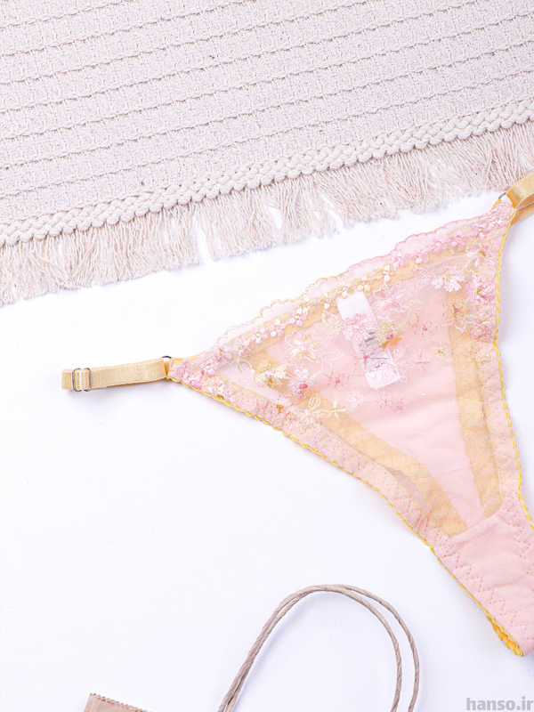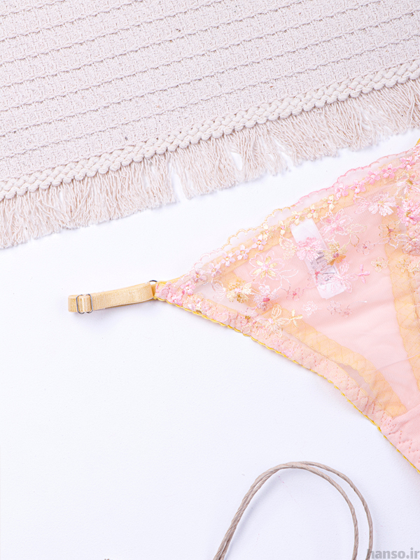 خانه فروشگاه ست لباس زیر زنانه ست شورت و سوتین ست شورت و سوتین فنردار توری ژینا Jina صورتی طرح B کد 1007