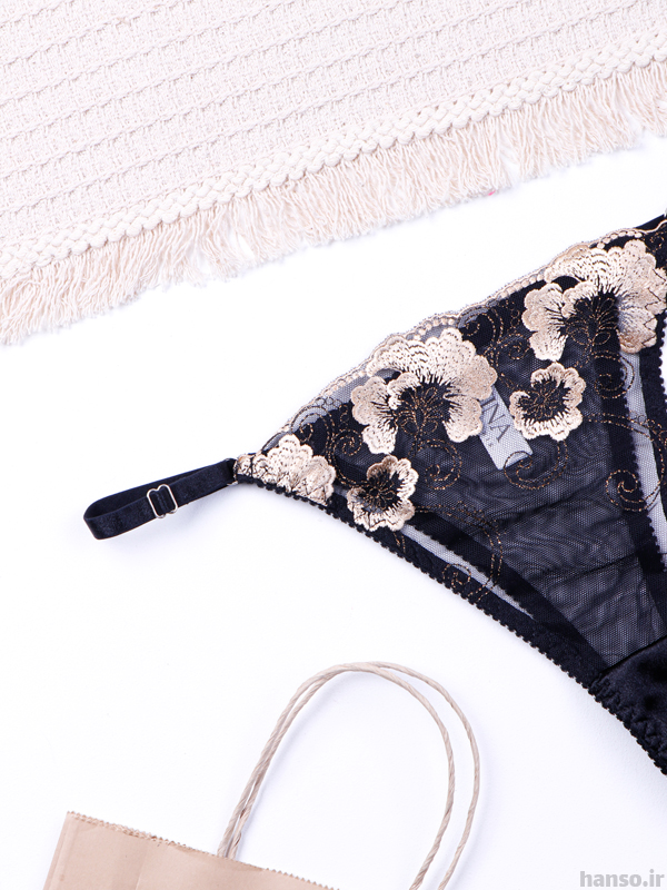 ست شورت و سوتین فنردار توری ژینا Jina مشکی طلایی کد 1009، از جنس توری (کشسانی کم) است که روی آن گلدوزی کار شده است. سوتین این ست فنردار و مدل شورت بکلس از جنس توری و لایه داخلی فاق شورت نخی است. این ست علاوه بر زیبایی، راحت هم هست و ظرافتش حتی از عکس هم به چشم میاد و تنخورش عالیه.