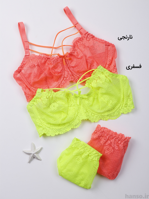 ست شورت و سوتین توری فنردار ژینا Jina سفید نارنجی کد 2010