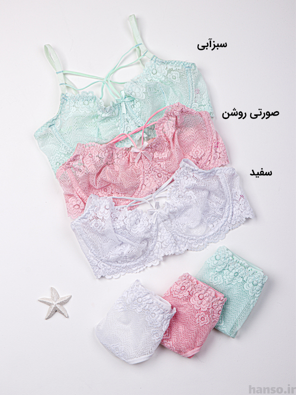 خانه فروشگاه ست لباس زیر زنانه ست شورت و سوتین ست شورت و سوتین گیپور فنردار ژوبین کد 1100