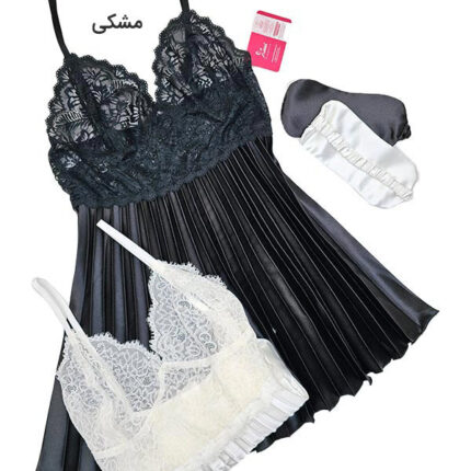 لباس خواب ساتن زنانه سه تیکه اما EMA کد 2858