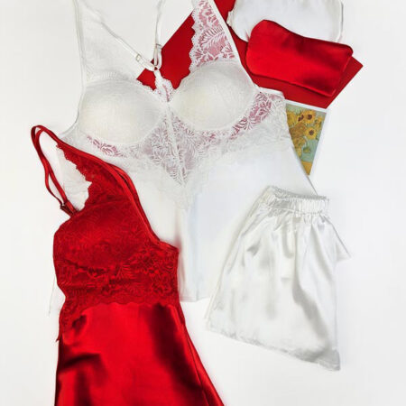 لباس خواب ساتن زنانه سه تیکه اما EMA کد 2858 ، شامل تاپ شلوارک و چشم بند با طراحی زیبا و تنخور جذاب و راحت و خنکی که دارد مناسب استفاده در بهار و تابستان است. بند های سر شانه این تاپ قابل تنظیم است و پشت تاپ، کش دوخته شده که باعث می‌شود تنخور این لباس زیباتر شود.