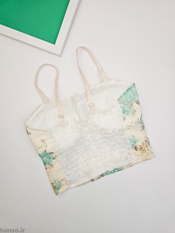 خانه فروشگاه لباس زنانه کراپ و بادی زنانه برالت توری بندی کاپدار کد 5698